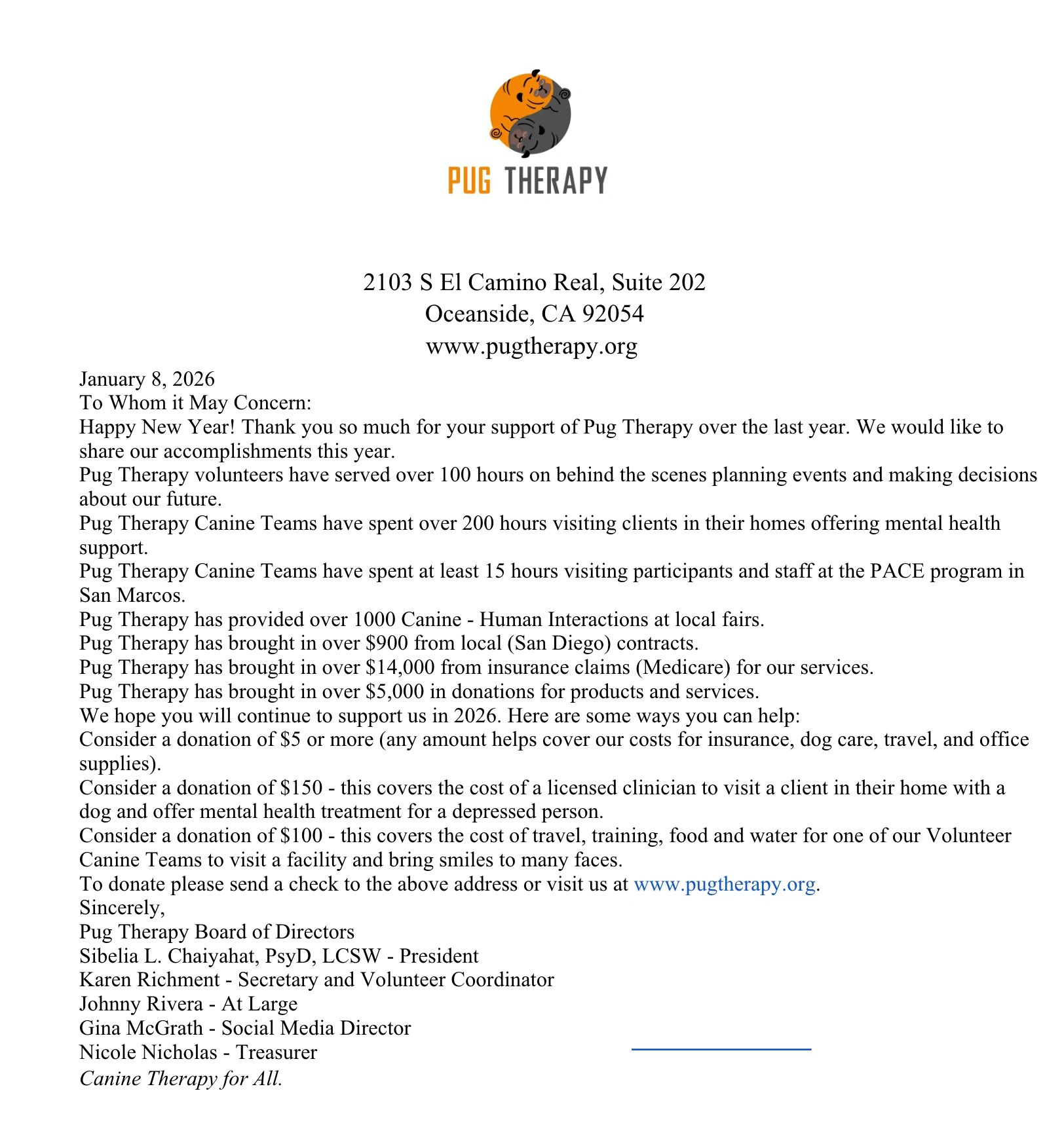 Here is a list of our past and upcoming canine therapy visits and events in and around Oceanside, CA